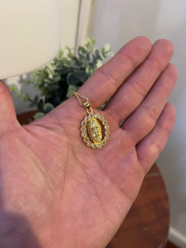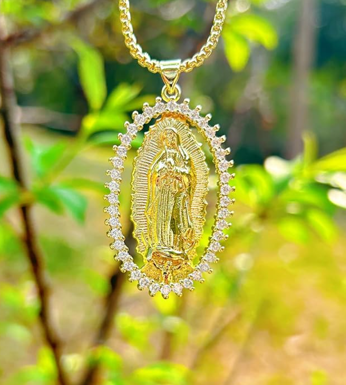 This Virgen de Guadalupe necklace is more than jewelry—it’s a heartfelt symbol of faith, protection, and devotion to the Virgin Mary, the beloved mother of Jesus. Every detail of the 18K gold-plated pendant and 17.7-inch chain shines with exquisite craftsmanship, carrying both elegance and spiritual comfort.